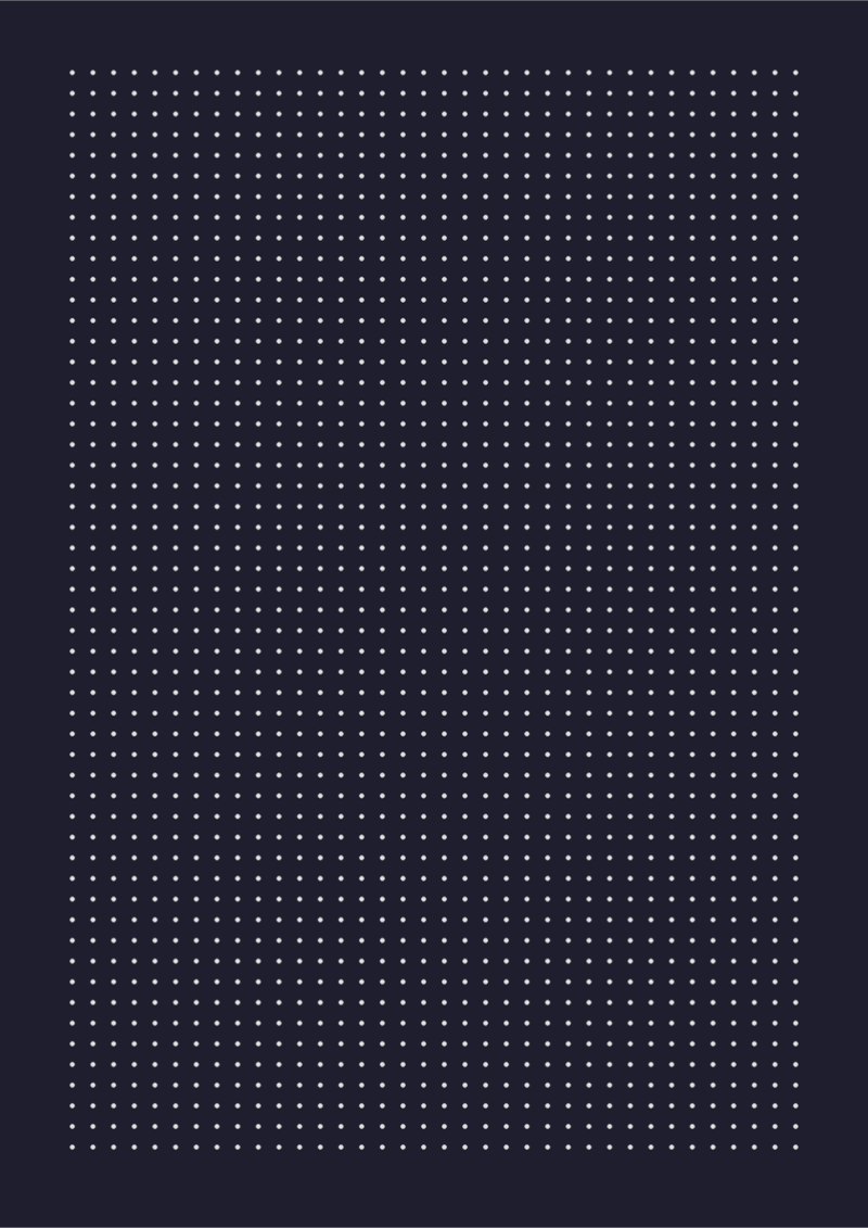 At 3.5mm dot spacing, this template has nearly twice the dot density of the standard 5mm grid. Narrow dot grid is popular with artists and architects who want very fine guide structures for detailed sketches, small lettering, or dense note-taking. It requires a fine-tip pen (0.3mm or smaller) to stay within the dot guides.