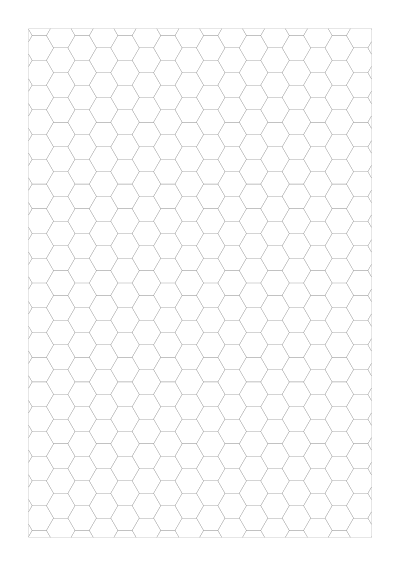 Hexagonal graph paper is one of the hardest formats to find in accurate printable form. Most versions online have slightly irregular hexagons due to pixel rounding errors. PaperMe calculates every hexagon vertex from exact trigonometric values, ensuring perfectly regular six-sided cells across the entire page.
