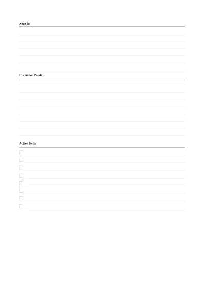Project managers and team leads use structured meeting notes to capture who said what and who is responsible for which next steps. The dedicated sections for agenda, notes, and action items prevent the common problem of decisions being buried in unstructured prose. Print a fresh sheet for every meeting and file chronologically.